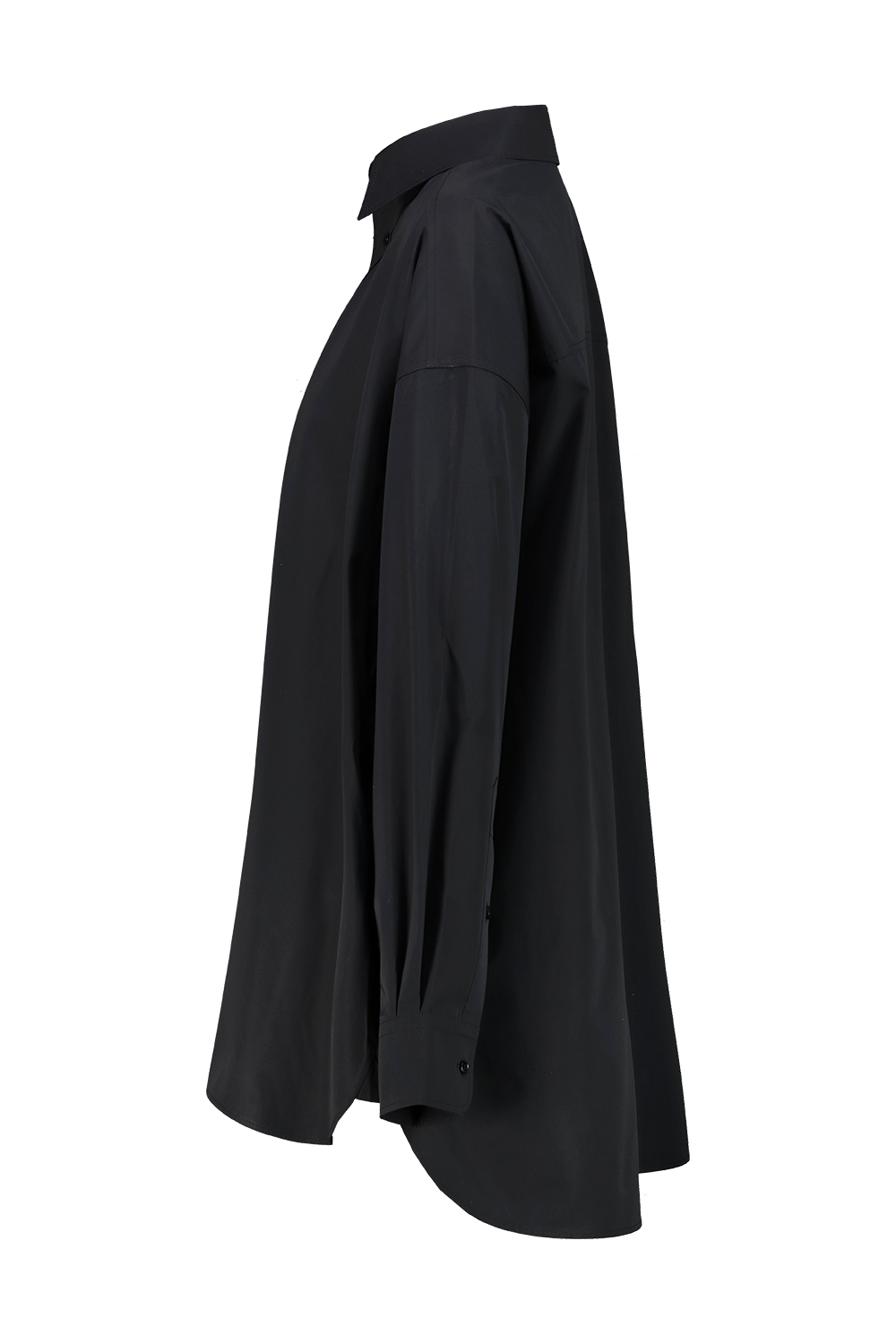 Wardrobe.nyc oversize shirt dress in cotton poplin , drop-shoulder, collared neckline, sleeve plackets and adjustable button cuffs.
